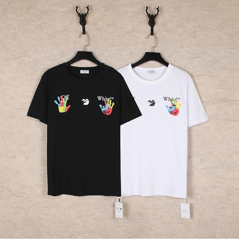 2024 Nova Moda 0FF Wh1te Camisetas Masculinas Carta Impressa Impressão Digital Colorida 100 % Algodão Camiseta High Off White Fêmea O-neck Curto Manga Unisexo Tamanho Superior S-XL