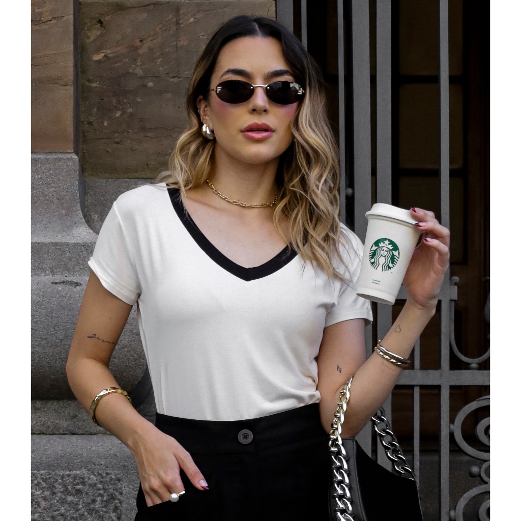 T-shirt Básica Feminina Blusa Dia a dia Lisa Gola V Estilosa Malha Elegante Moda Verão