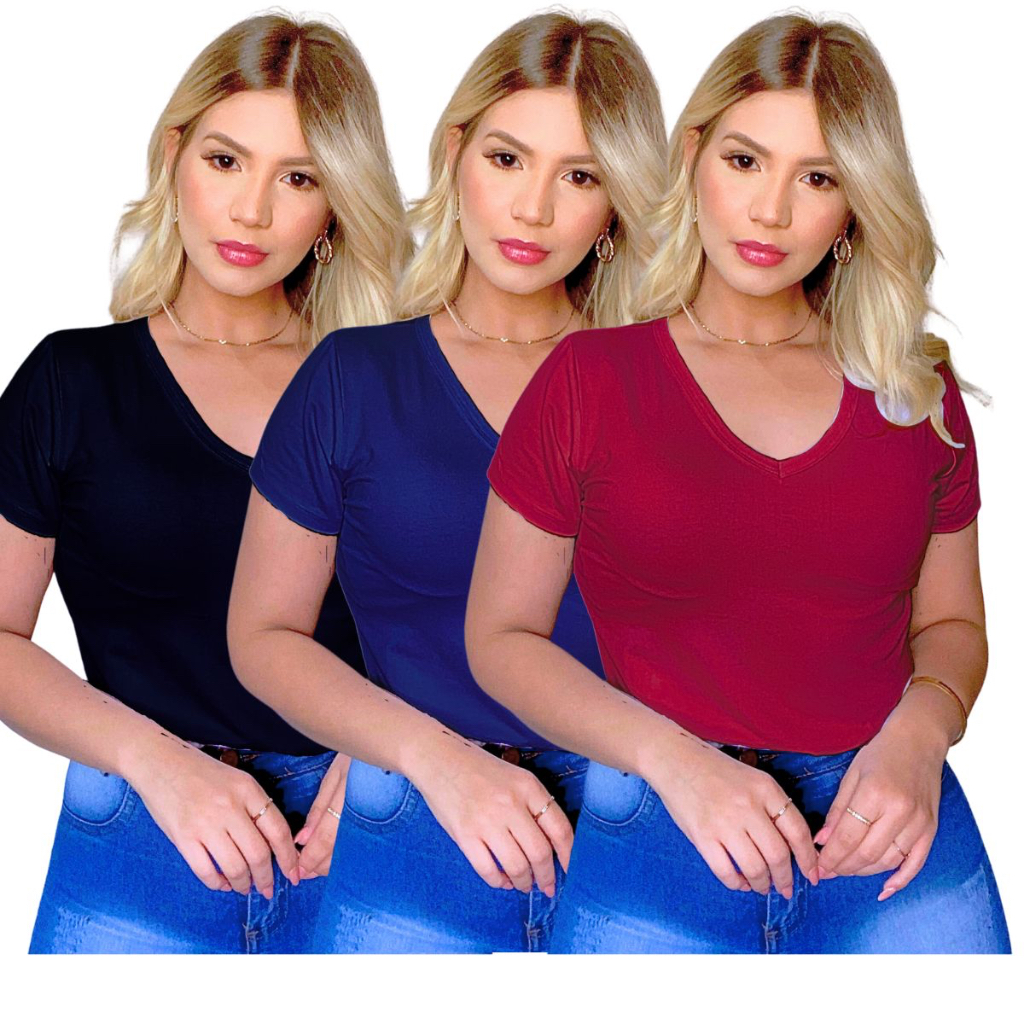 Kit 5 Camiseta Feminina T Shirt Blusa Gola V Basica Lisa Algodão Premium