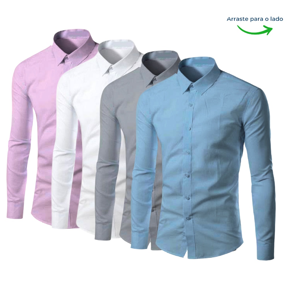 Kit 4 Camisa Social Masculina Manga Longa Slim Fit - Algodão - Entrega Rápida