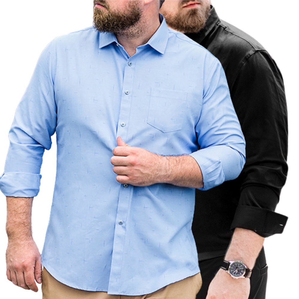 Kit 2 Camisa Masculina Social Extra Grande Camisa Social Manga Longa Plus Size Com Elastano Camiseta Social Tecido Não Amassa
