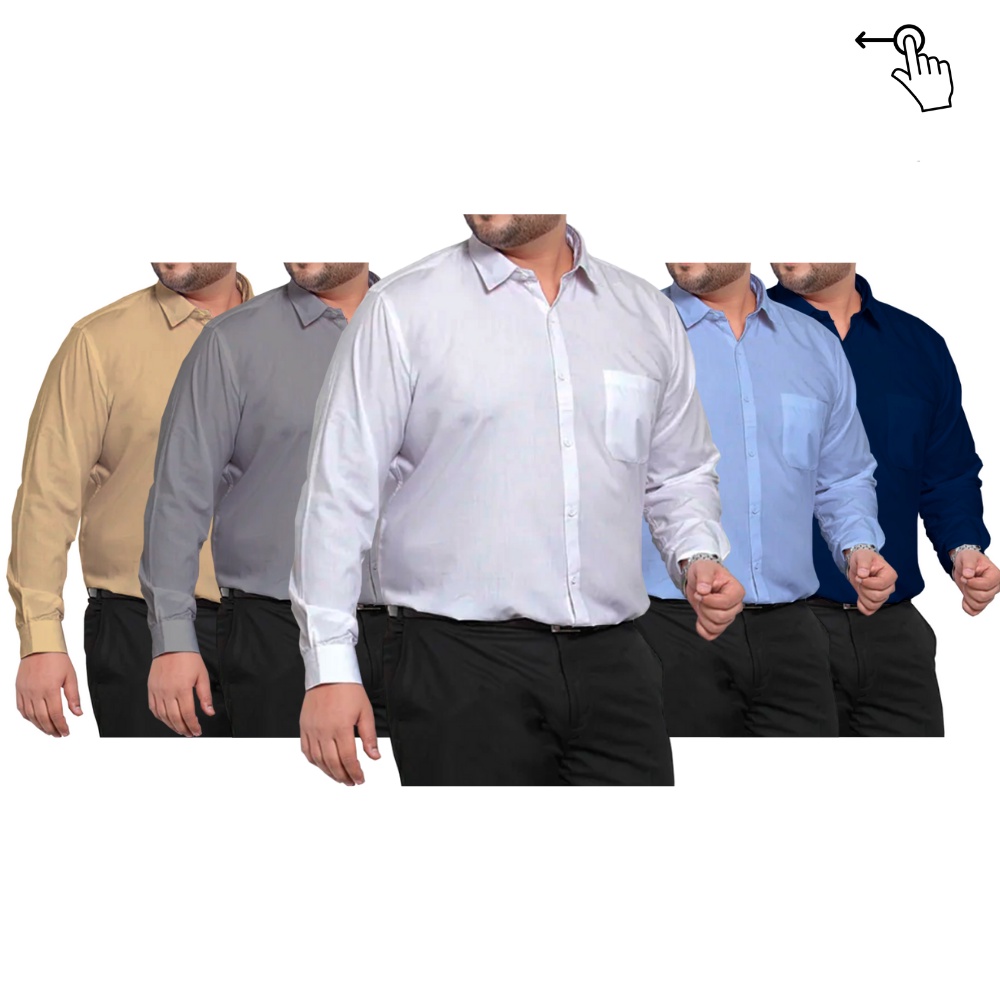 Kit 5 Camisa Social Plus Size Manga Longa Camisa Masculina Social Tamanho Extra Grande Camiseta Social G1 G2 G3