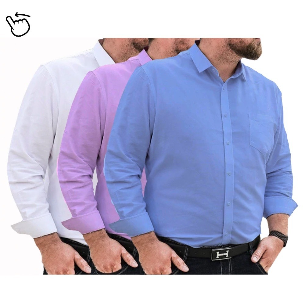 Kit 3 Camisa Social Plus Size Manga Longa Camisa Masculina Social Tamanho Extra Grande Camiseta Social G1 G2 G3