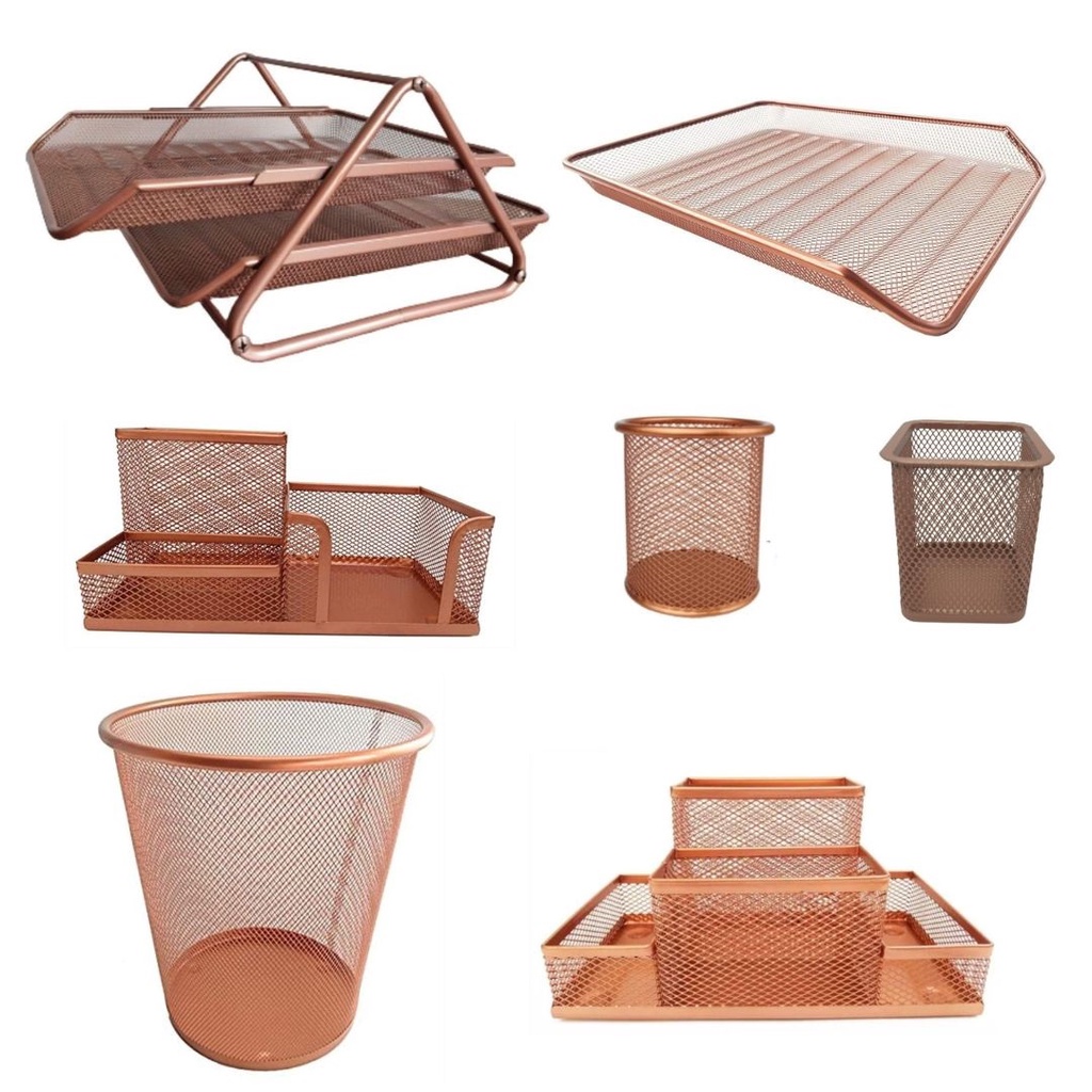 Organizadores de Escritorio Monte Seu Kit Bandeja Porta Papel Porta Lápis Lixeira Rose Gold Gv Office