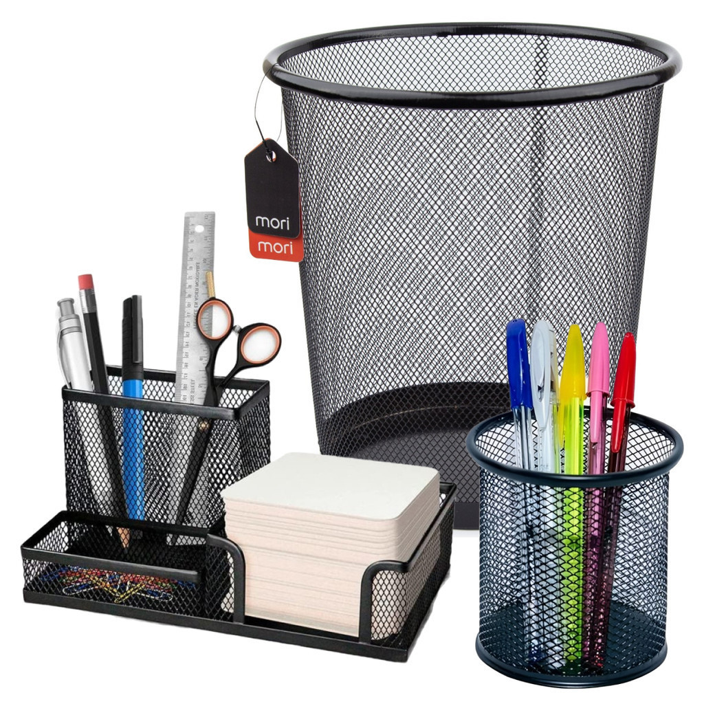 Kit Lixeira de Escritório 10 Litros Metal Telada+ Porta Trecos Organização e Porta Lápis Caneta