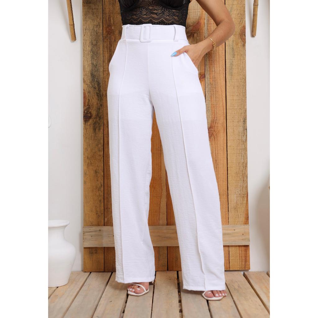 Calça Pantalona Feminina Duna plus Size alfaiataria wide leg Cintura Alta Elástico