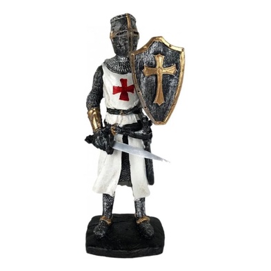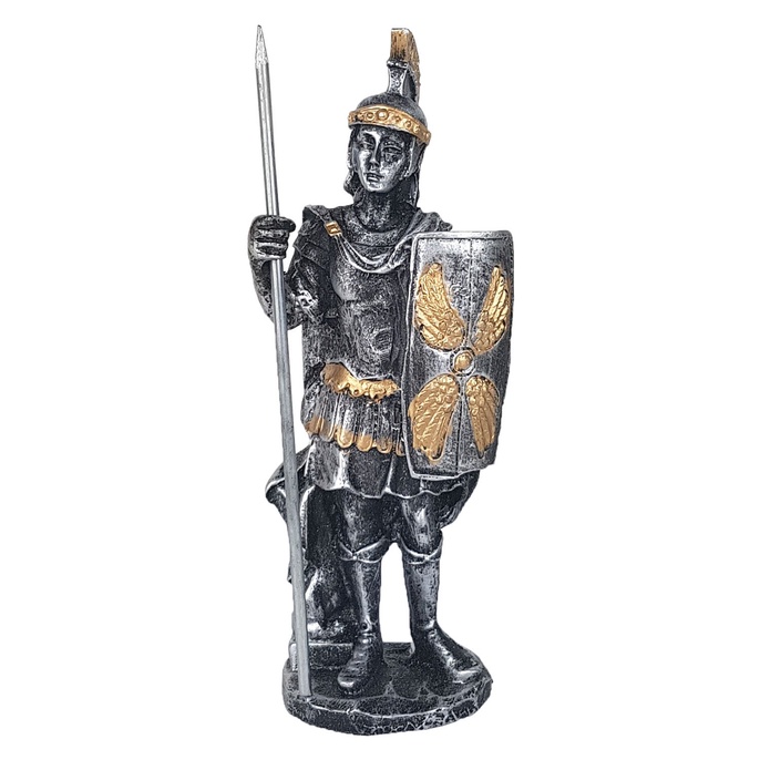 Guerreiro Romano Pequeno Com Escudo e Lança Boneco Medieval Resina