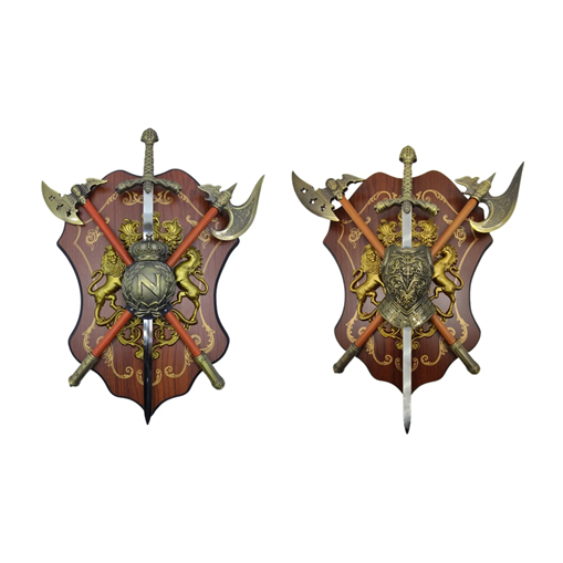 ESCUDO MEDIEVAL BRASÃO ESPADA E MACHADOS ORNAMENTO DE PAREDE GRANDE TEMPLARIO SOLDADO