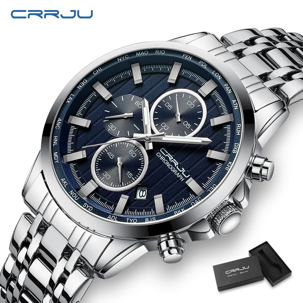 Relógio Masculino CRRJU Nova Marca Original Chrono Multifuncional De Aço Inoxidável Ponteiro Luminoso De Moda Casual De Quartzo À Prova D'água 2320 X