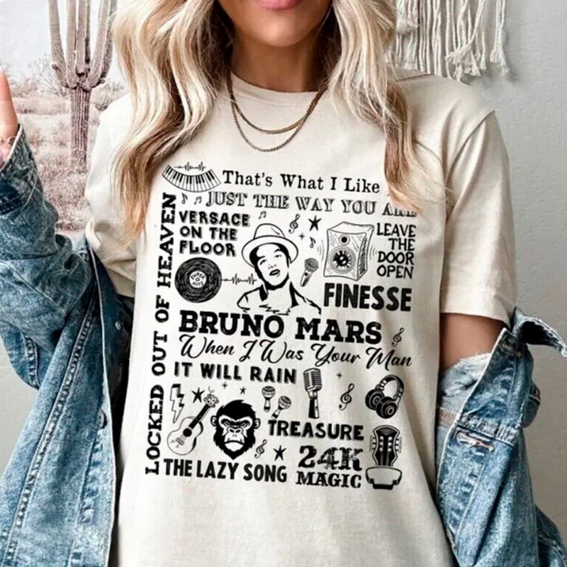 Camiseta T-shirt Unissex Algodão Bruno Mars Musics Tracklist Malha 100% algodão