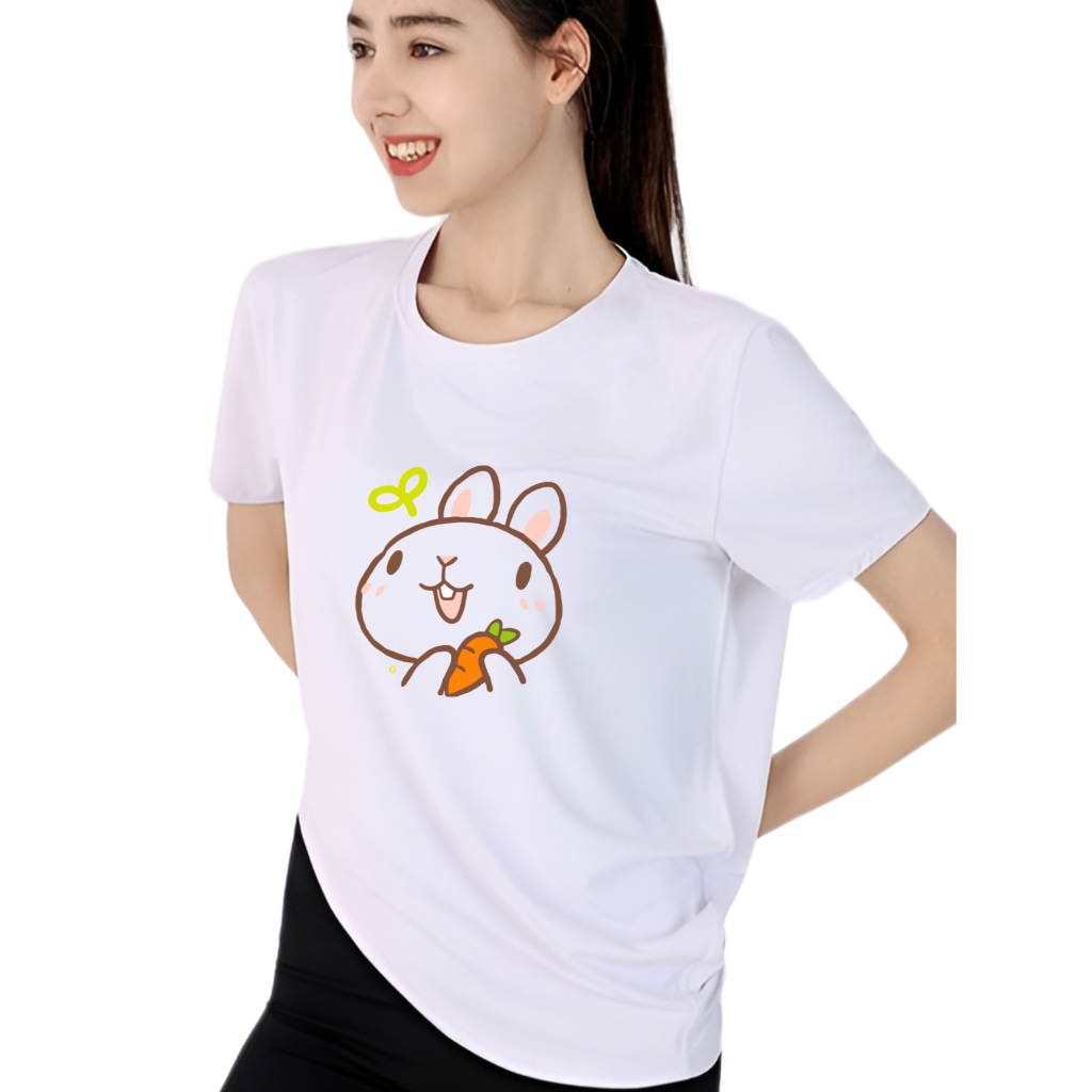 Camiseta Unissex 100% Algodão Coelho Fofo Coelhinho Cenoura T-Shirt Baby Look Confortável Macia