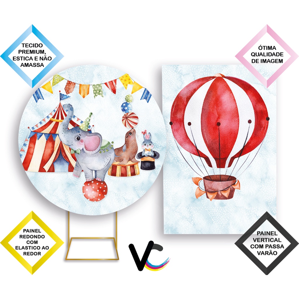 Painel De Festa Redondo 3D + Painel Vertical 1,50 x 2,20 - Circo Azul Aquarela