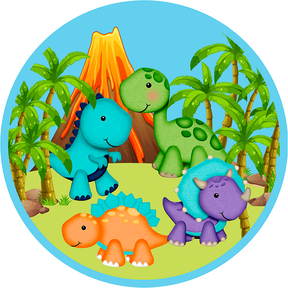 Painel 3d Festa Redondo 1,50 Malha Sublimado Dinossauro Dino Baby Vulcão