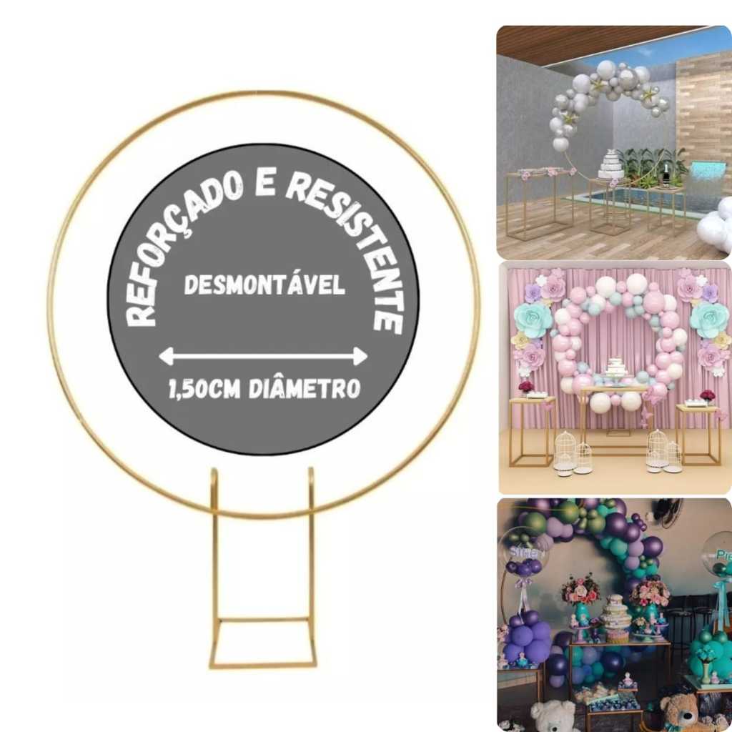 Estrutura Para Painel Arco Redondo Ferro Desmontavel 1,50 Decoração De Festas e Eventos Arco Bexigas Regulavel
