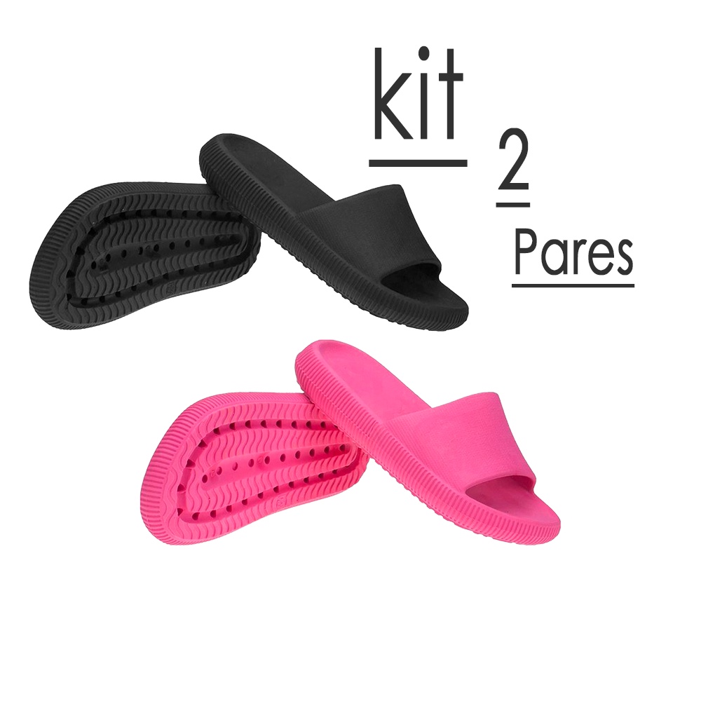 Kit 2 Pares Chinelo Flat Feminino Tamanco Nuvem Plataforma Confortável