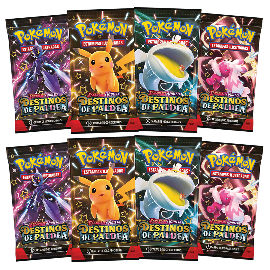 Kit 08 Pacotes Booster Pokémon Escarlate e Violeta Destinos de Paldea