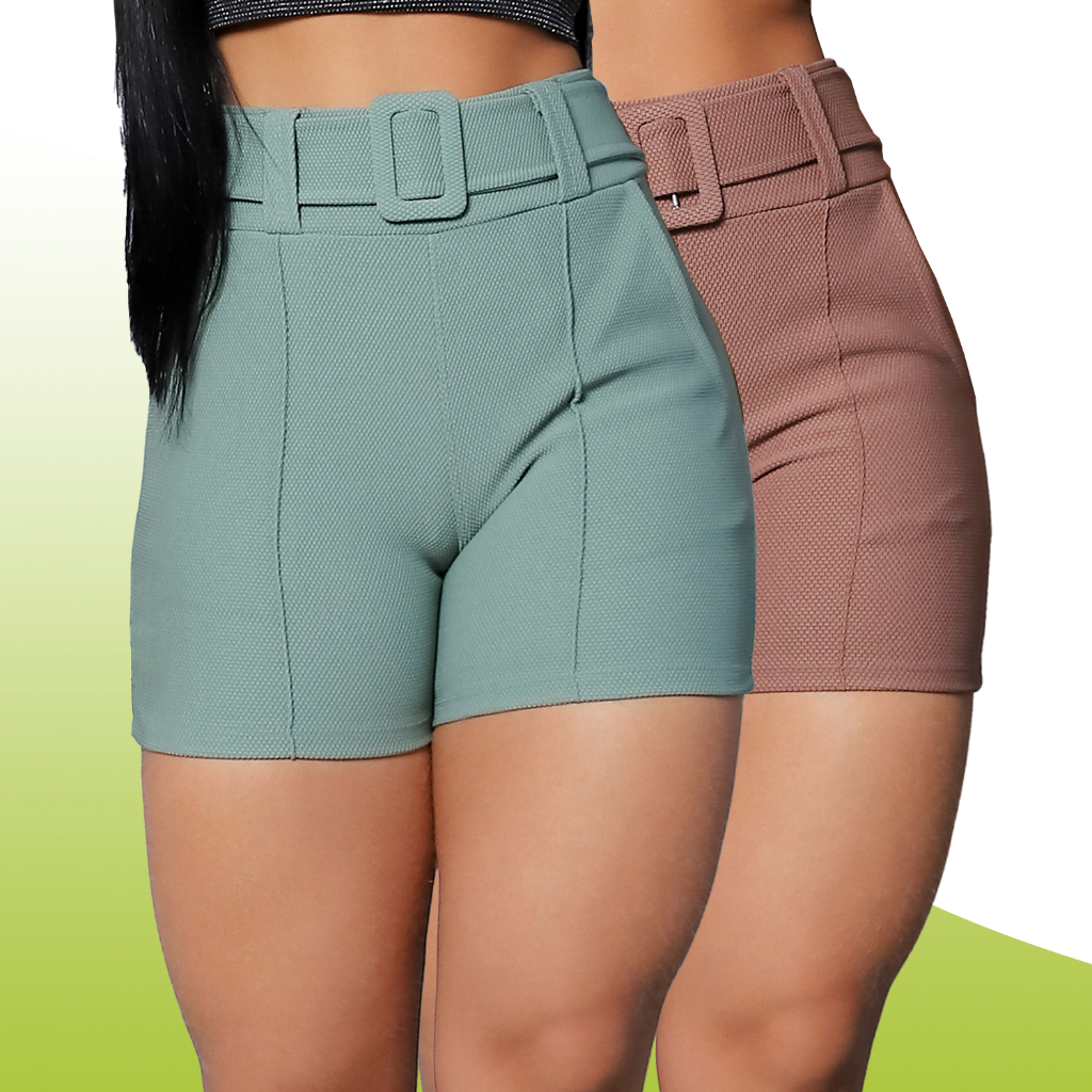 Short Feminino Curto Alfaiataria com Cinto e Cintura Alta - Moda Casual