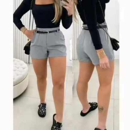 Short Feminino Cintura Alta Alfaiataria Com Cinto Casual Elegante