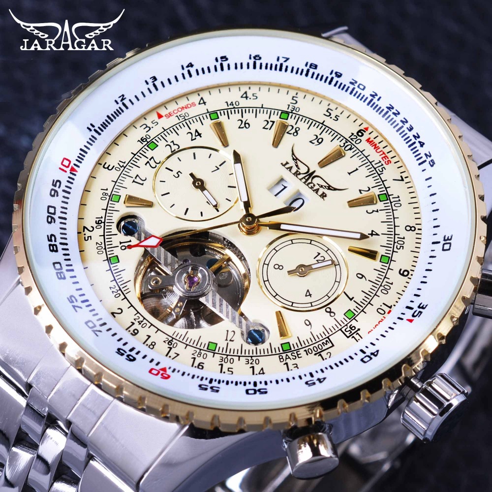 Homens Relógios Automáticos Jaragar Banda De Aço Auto-Vento Relógio Mecânico