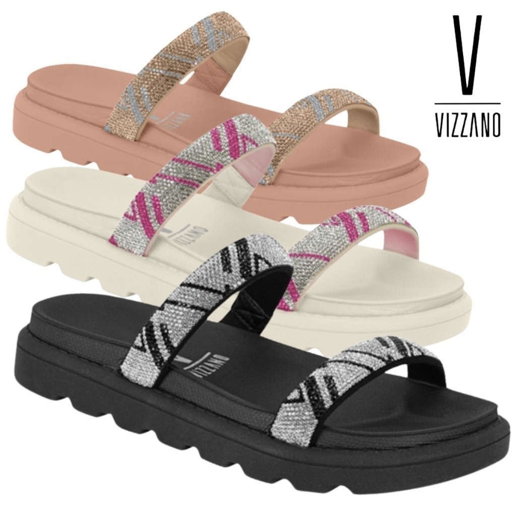 Sandalia Papete Vizzano Original Feminino Rasteira Flat Strass Papete Birken Rasteira Chinelo Slide Conforto Rasteirinha