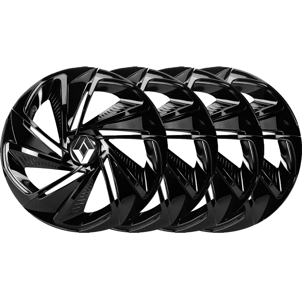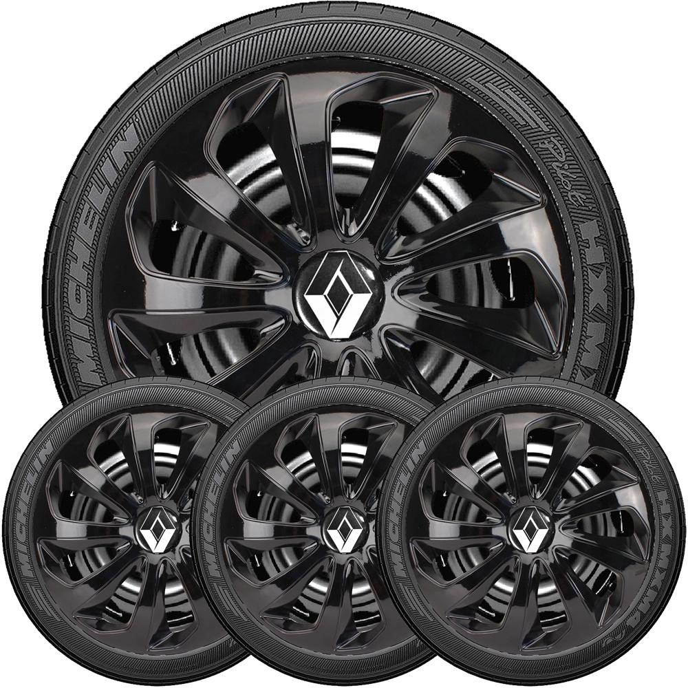Jogo Kit 4 Calotas Esportivas Aro 13/14/15 Preta Brilhante Renault Sandero Clio Logan Megane Fluence Kwid