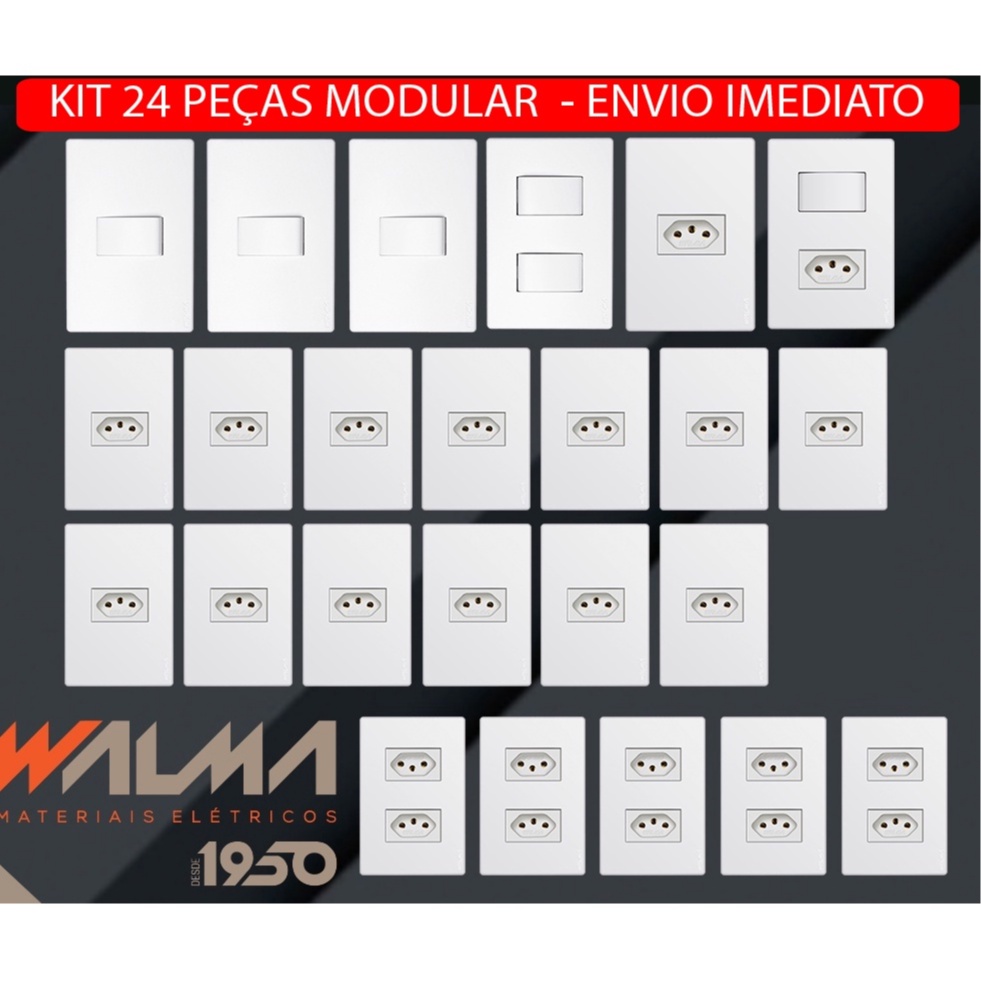 Tomadas E Interruptores (24 Pç) Kit Casa modular Linha WALMA VIVENCE