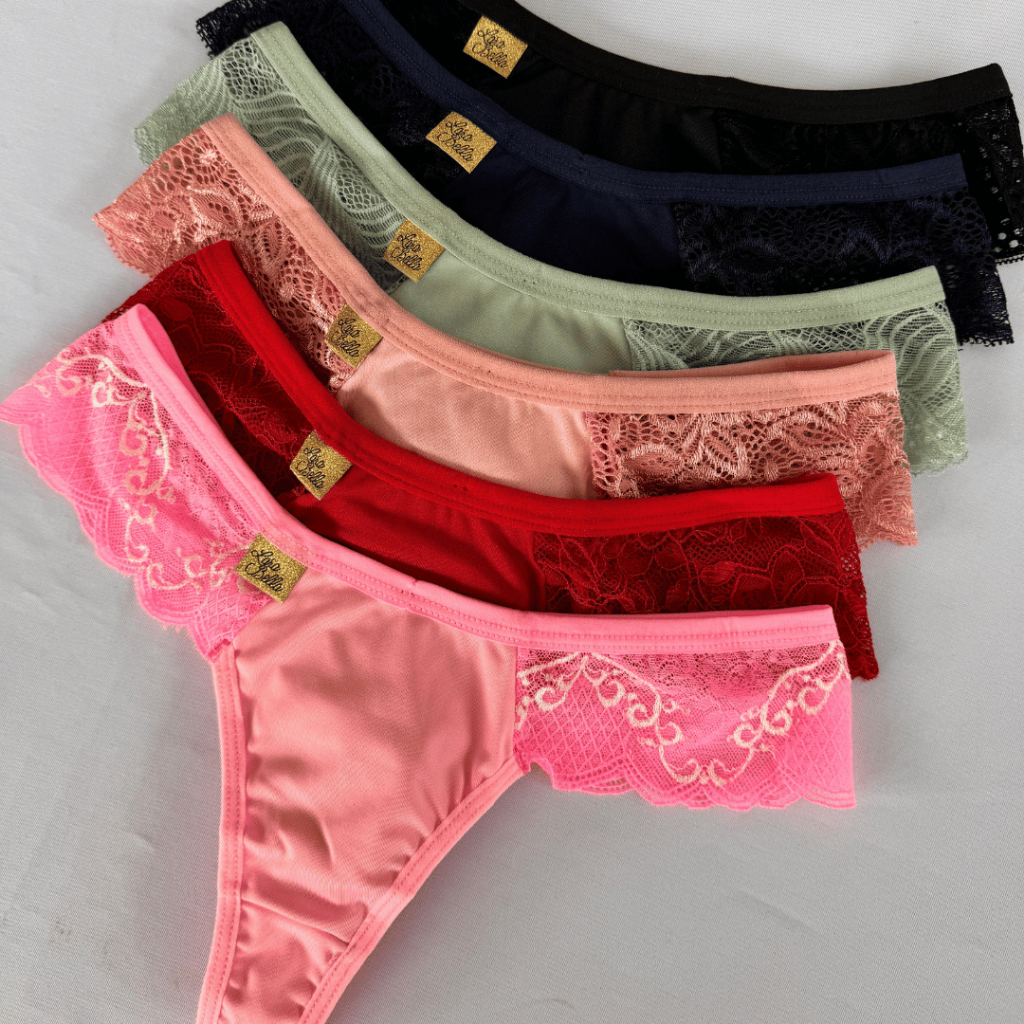 Kit com 5 Calcinhas em Renda Fio Dental Sexy Lingerie Feminina Sensual Moda Intima Revenda no Atacado