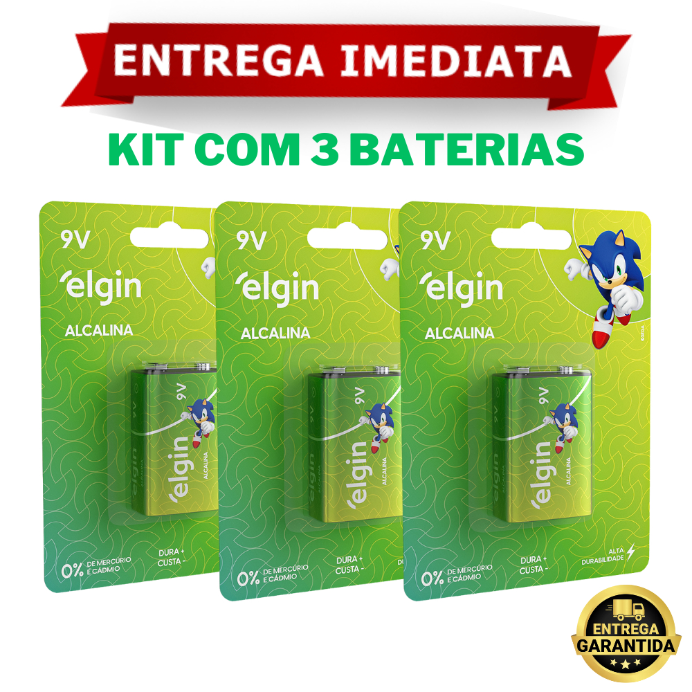Pilha Bateria 9v Alcalina Elgin 1 Cartela com 1 Serve Para Brinquedo Radio Sensor Violão - Original Elgin