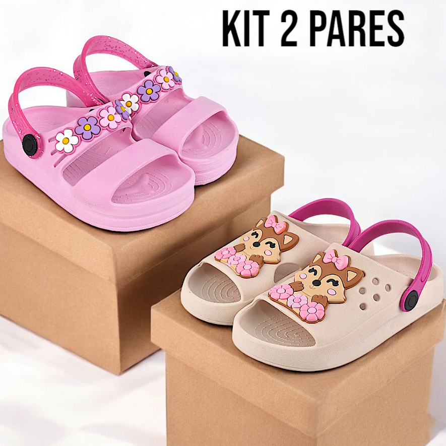 Kit 2 Pares Sandália Papete Chinelo Nuvem Infantil Menina