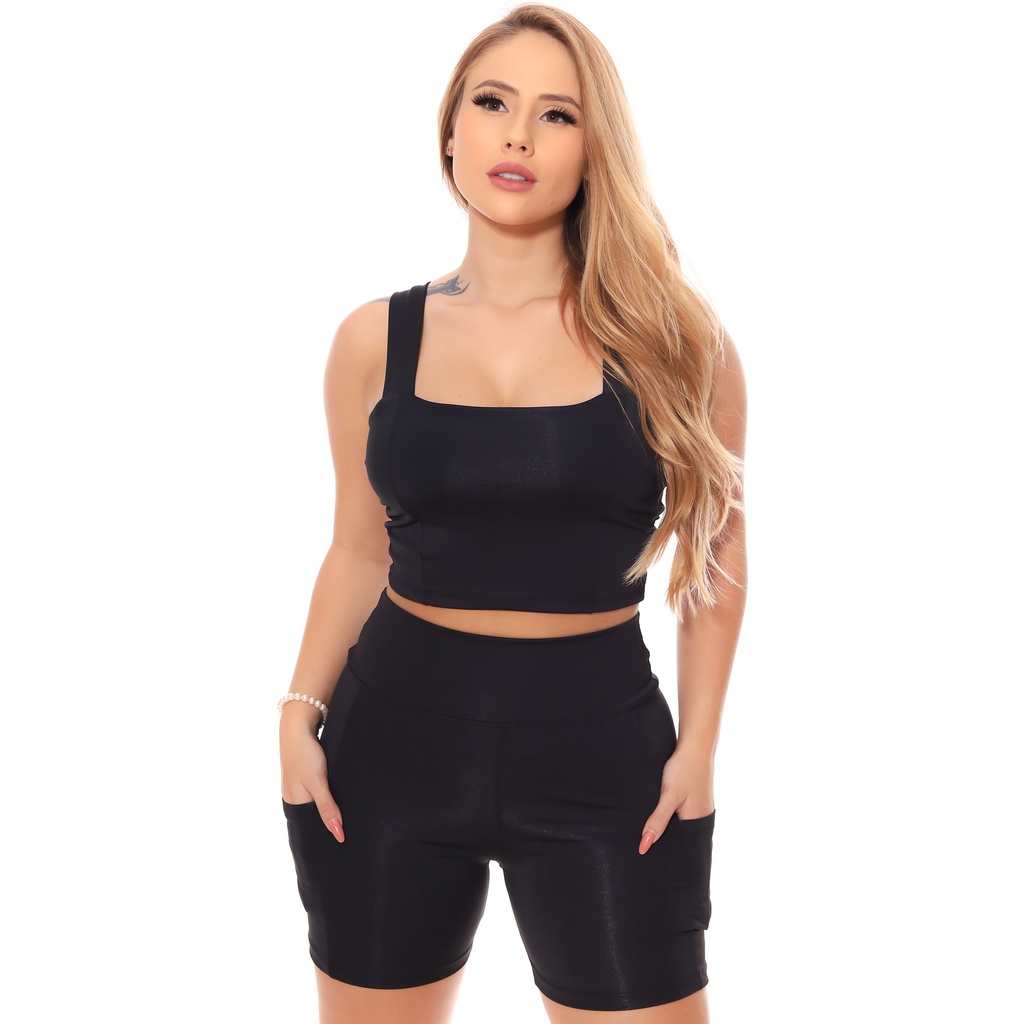 Conjunto Academia Short com bolso + Top Suplex Fitness Short Cós Alto Meia Coxa