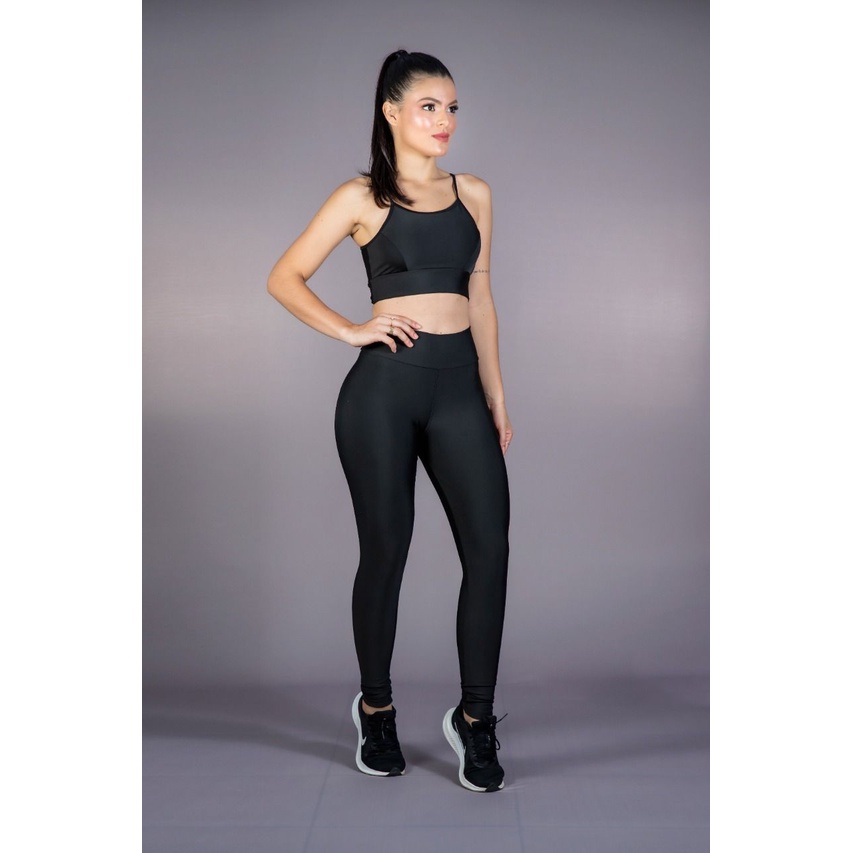 Conjunto Fitness Top e calça legging Cós alto