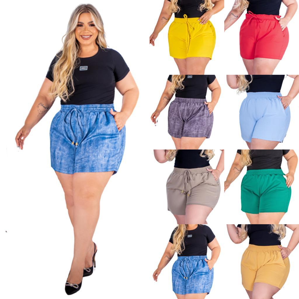 KIT 5 SHORTS PLUS SIZE G1 G2 G3 FEMININO COM ELASTICO NO CÓS CINTURA ALTA MODA CONFORTÁVEL