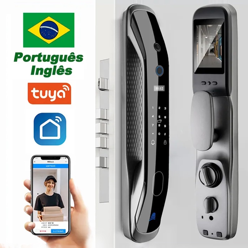 Fechadura Eletrônica Digital Câmera Reconhecimento Facial Biométrica Senha Numérica Cartão APP - Intelar
