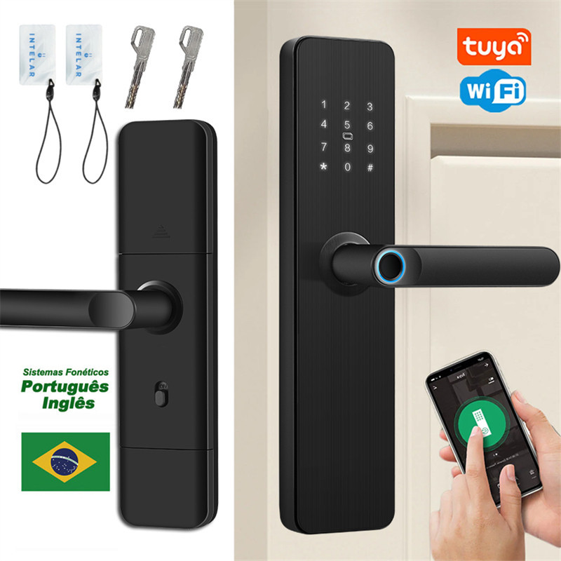 Intelar Fechadura Digital Eletronica Wi-Fi App TUYA Com Biometria Touch Senha Cartão Tag digital e desbloqueio