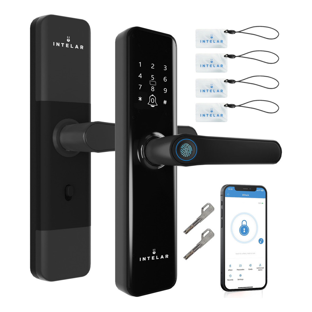 Intelar Fechadura Digital Eletronica Wi-Fi App TUYA Com Biometria Touch Senha Cartão Tag digital e desbloqueio com chave Duty Free - Em estoque