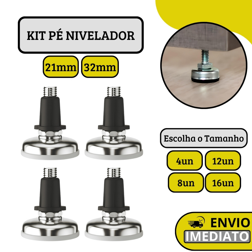 Kit Pé Sapata Niveladora Para Regulagem De Móveis Com Bucha - 21mm | 32mm