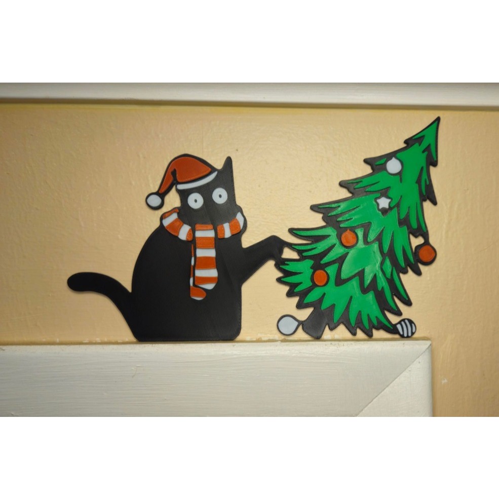 Decoração de Natal Gato Travesso 🎄😺 Enfeite Divertido para Parede ou Porta