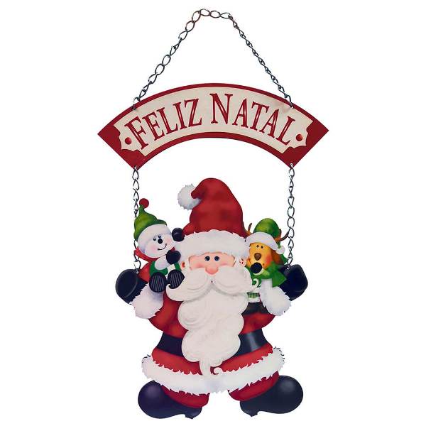 Natal - Placa Decorativa para Porta ou Parede - Feliz Natal - Papai Noel