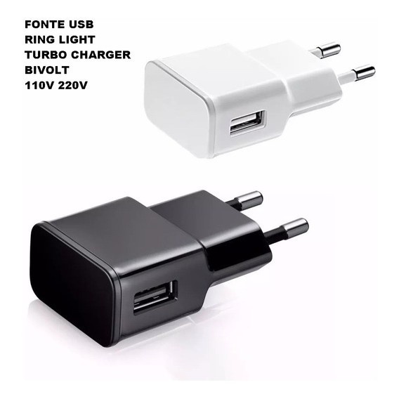 Fonte De Energia 5v Para Ring Light Turbo Usb Bivolt 110v 220v Tomada de Parede Carregador