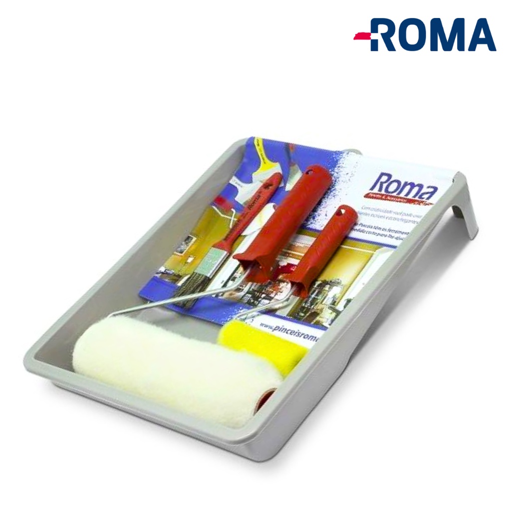 Kit Pintura Profissional Flex Polipropileno Pincéis Rolo Lã 5 Peças Roma 23cm Pintura Parede Teto Multiuso