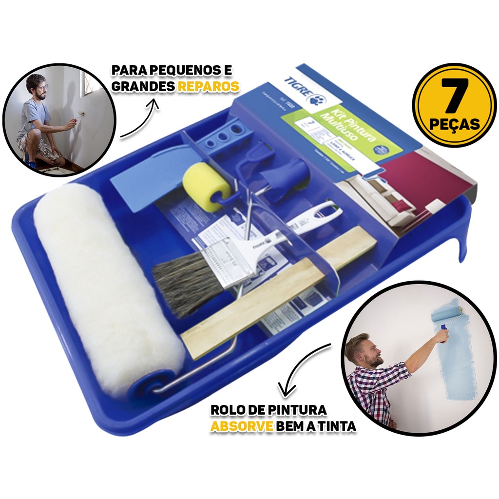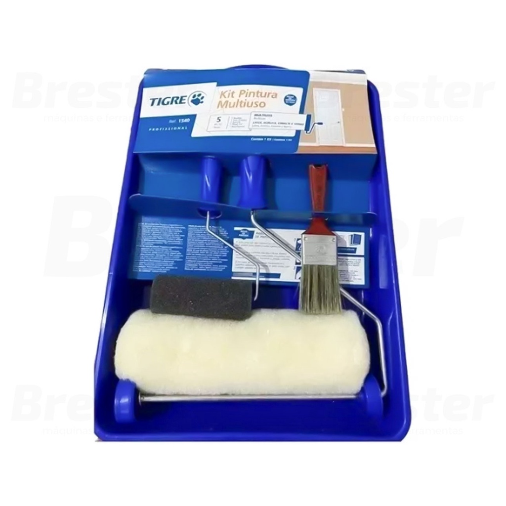 Kit 5 Peças Pintura E Reparo Teto Parede Multiuso Rolo Suporte Bandeja Pincel Rolinho Tigre Original