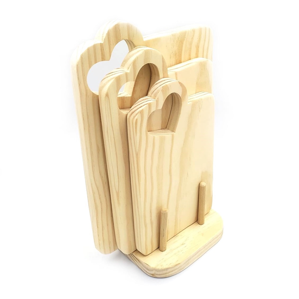 Conjunto 3 Tábuas Com Alça De Coração E Suporte Em Madeira