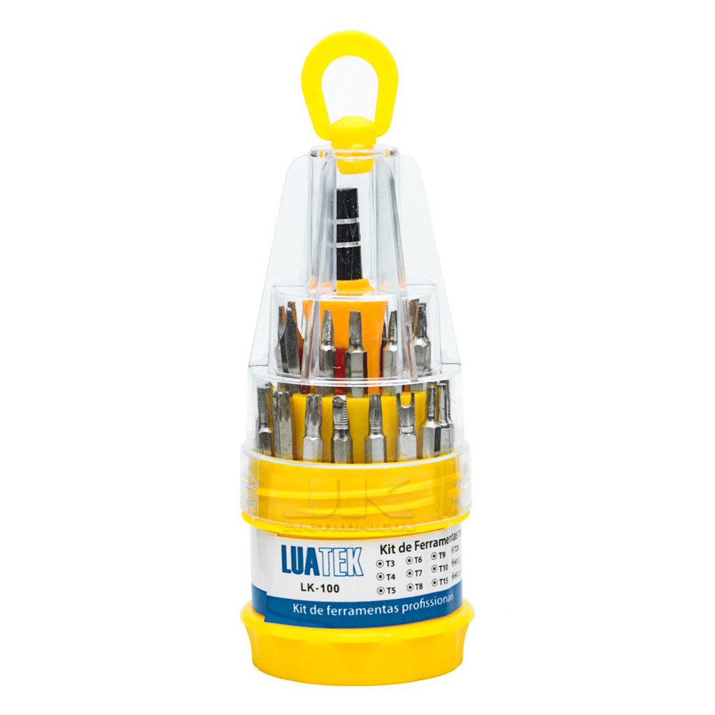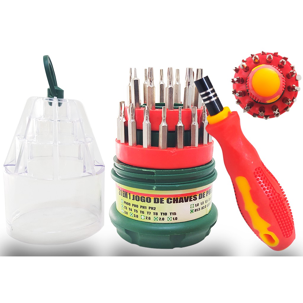 Kit Jogo 31 Peças Chaves de Precisão Diversas, Allen, Torx, Fenda, Phillips, Y, U