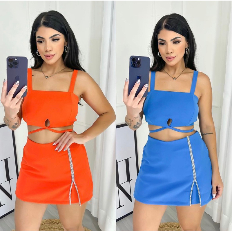 Conjunto Curto Com Saia E Cropped Costa Nua Suplex Premium ( ISABELLE )
