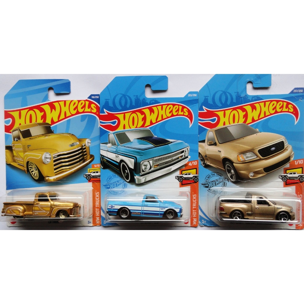 hot wheels oferta 3 minis 67 chevy c10 pickup + 99 ford f-150 svt lightning + la troca