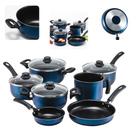 Conjunto Panelas 7 pecas Teflon Antiaderente 7 pecas Cor Azul Tampa de Vidro