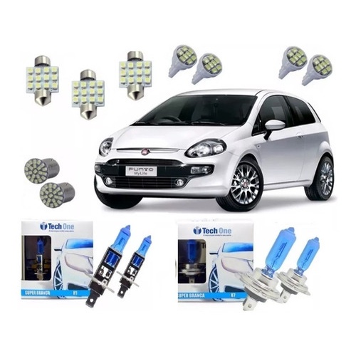 Kit Lampadas Super Brancas Punto 2008 2009 2010 2011 Techone