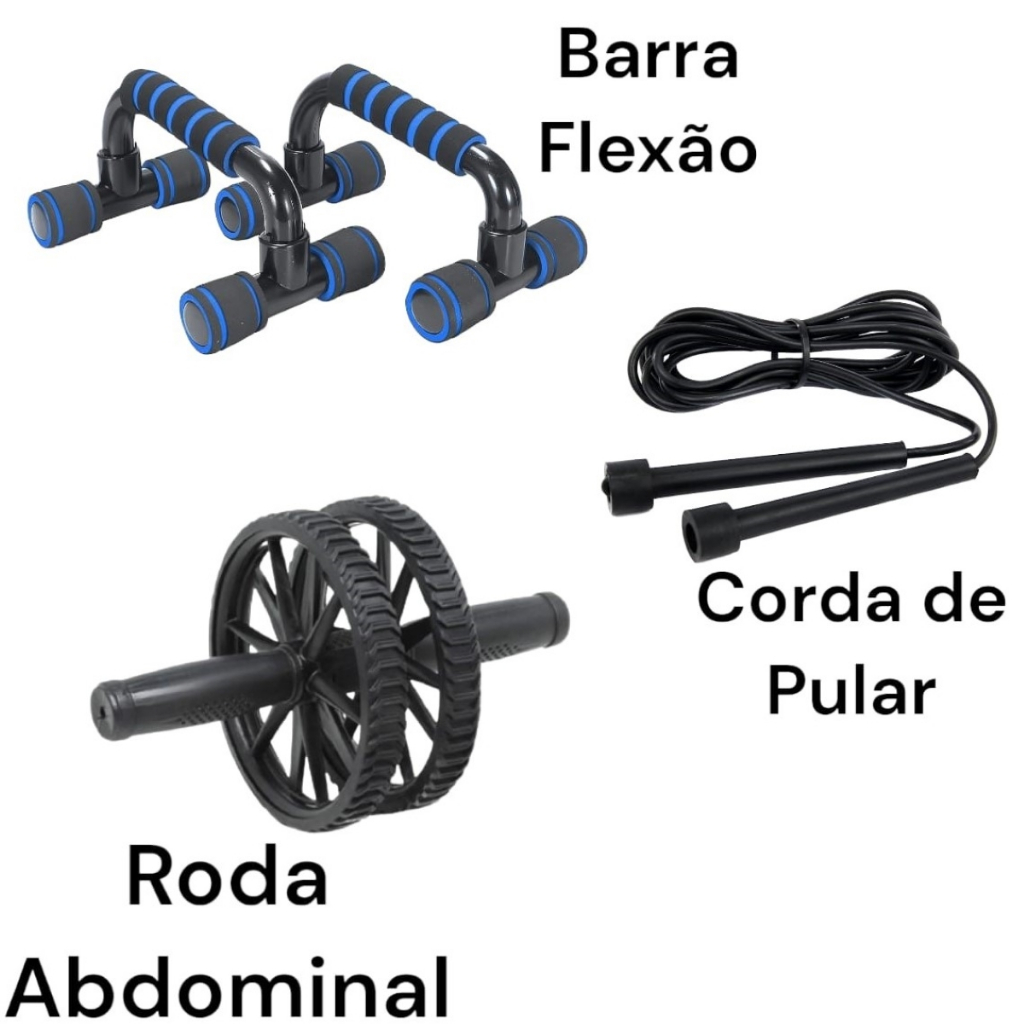 Kit Roda Abdominal Barra de Flexão Corda de Pular Kit Treino Funcional Fitness Crossfit Exercícios