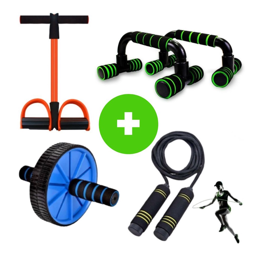 Kit Roda Abdominal Barra De Flexão Corda De Pular Exercício