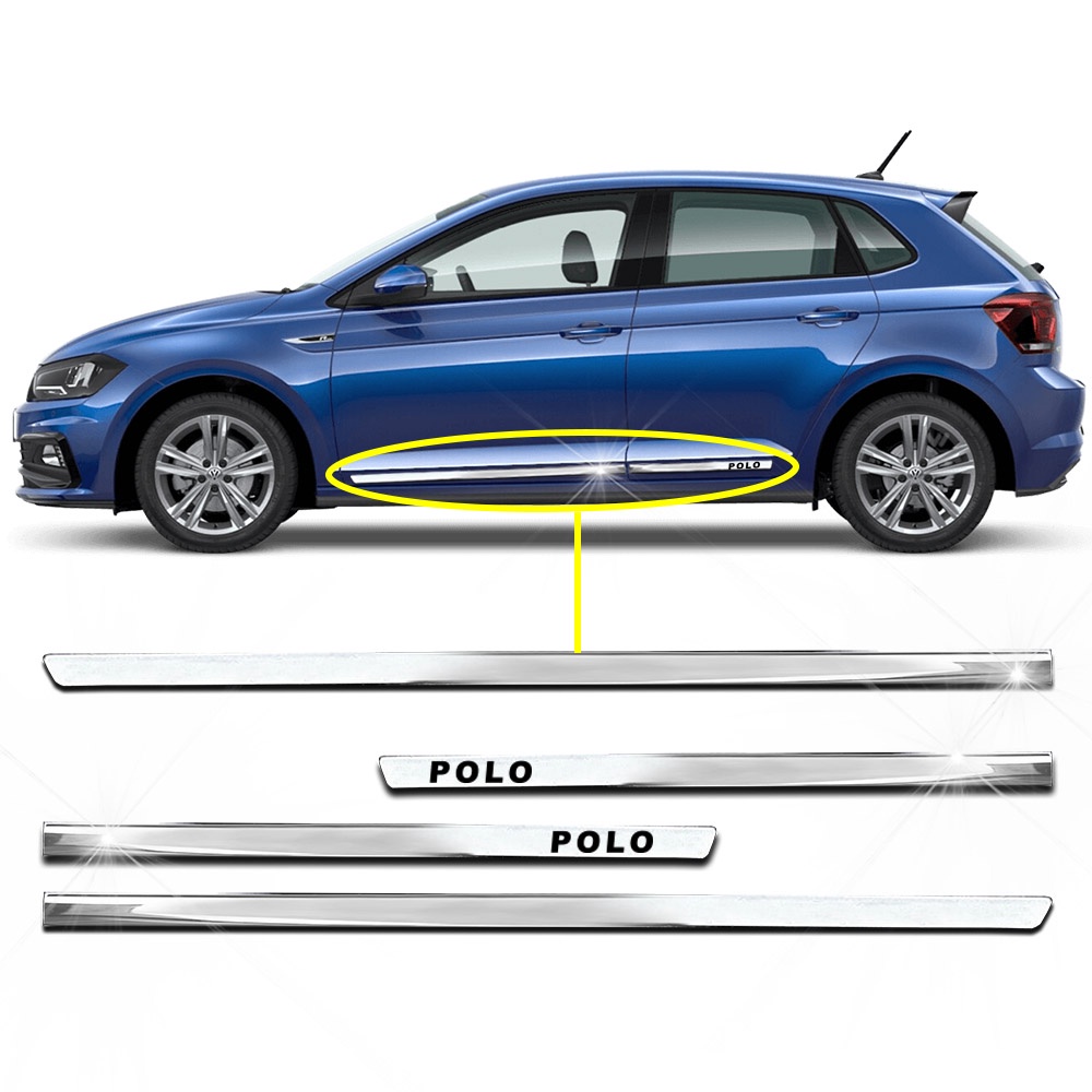 Friso Lateral Slim Inferior Polo 2007 2008 2009 2010 2011 2012 2013 2014 2015 2016 2017 2018 2019 2020 2021 2022 2023 Kit Cromado Personalizado 4 Portas